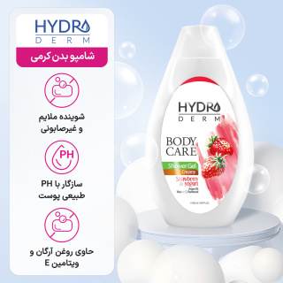 شامپو بدن کرمی هیدرودرم با رایحه ماست و توت فرنگی حجم 500 میلی لیتر