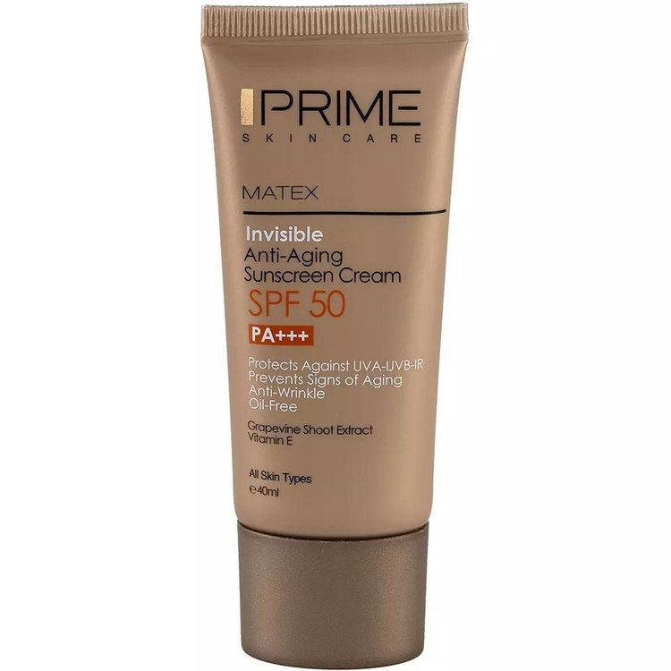 کرم ضد آفتاب بی رنگ فاقد چربی پرایم مدل Matex مناسب انواع پوست جوان کننده و ضد چروک حاوی عصاره موثر ضد پیری حجم ۴۰ میل
