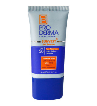 کرم ضد آفتاب بی رنگ پرودرما با SPF50 مناسب آقایان حجم 40 میلی لیتر