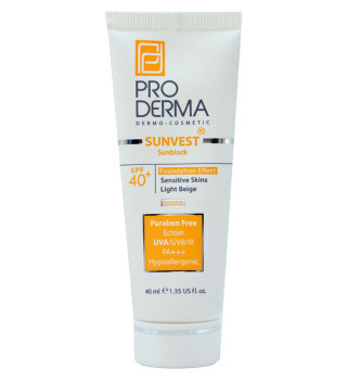 کرم ضد آفتاب رنگی پرودرما با SPF40 مناسب پوست حساس حجم 40 میلی لیتر/ بژ روشن