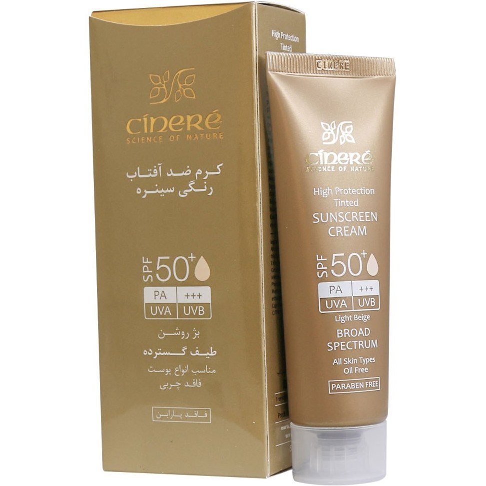 کرم ضد آفتاب رنگی سینره با SPF50 مناسب انواع پوست حجم 50 میلی لیتر/ بژ روشن