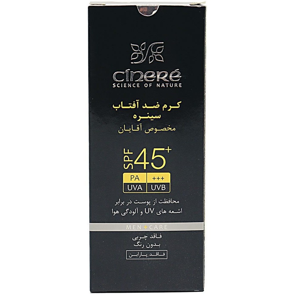 کرم ضد آفتاب بی رنگ سینره با SPF45 مناسب آقایان حجم 50 میلی لیتر